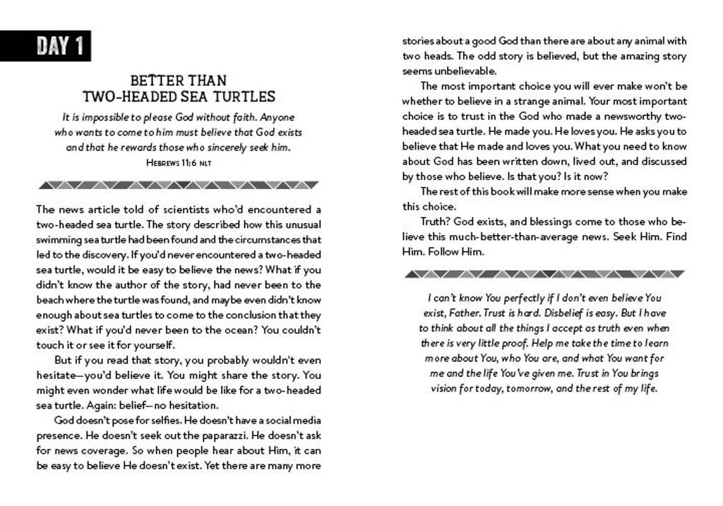 The 100-Day Devotional for Guys offers relatable, real-life wisdom and inspiration for everyday living. Guys, ages 13 and up, will encounter page after page of biblical truths they can apply to every area of their lives. With topics like Popularity, Doubt, the Media, Stress, Self-Image, Priorities, Contentment, and more, teenage boys will be encouraged to grow in their faith and spend regular time in the heavenly Father's presence. Each devotional reading is complemented by a brief scripture selection and short prayer-starter. The 100-Day Devotional for Guys is the perfect place for teen boys to spend their next hundred days!