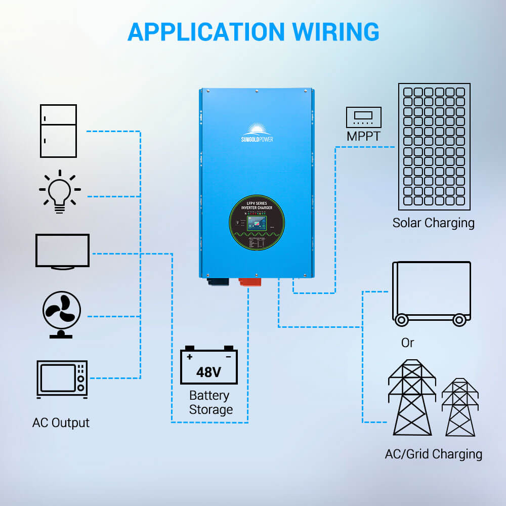 ★ LF-PV Series Pure Sine Wave Inverter is a combination of a 15000-watt inverter, AC charger, and Auto-transfer switch into one complete system.
