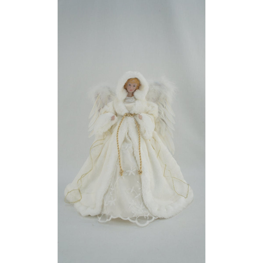 16 in Beautiful angel tree topper in a white dress with a hood.