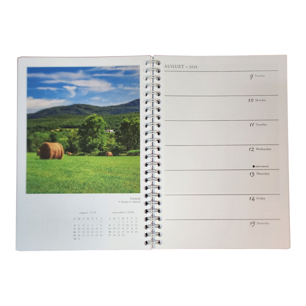 2026 Vermont Living Weekly Planner combines stunning outdoor photography with a compact, one week per page format (perfect for pocket or purse), sturdy wire binding for ease of use, and plenty of room for appointments and notes.