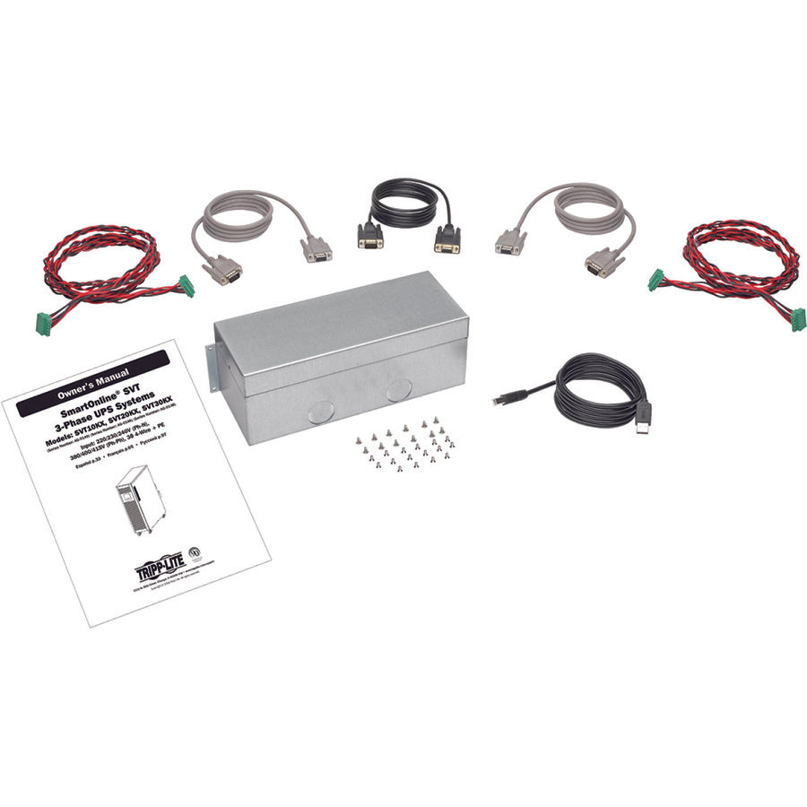Managing the SVT20KX is simplified through the interactive front-panel LCD interface, which displays critical operating conditions and diagnostic data, such as load levels, available runtime, alarm status, battery charge, and voltage and frequency values. Four LEDs indicate bypass, line, battery and fault modes. A serial port allows connection to Tripp Lite's free local shutdown agent. A built-in card slot supports WEBCARDLX or RELAYCARDSV for network interface and remote monitoring and control. The SVT20KX's reduced size and small footprint save valuable space.