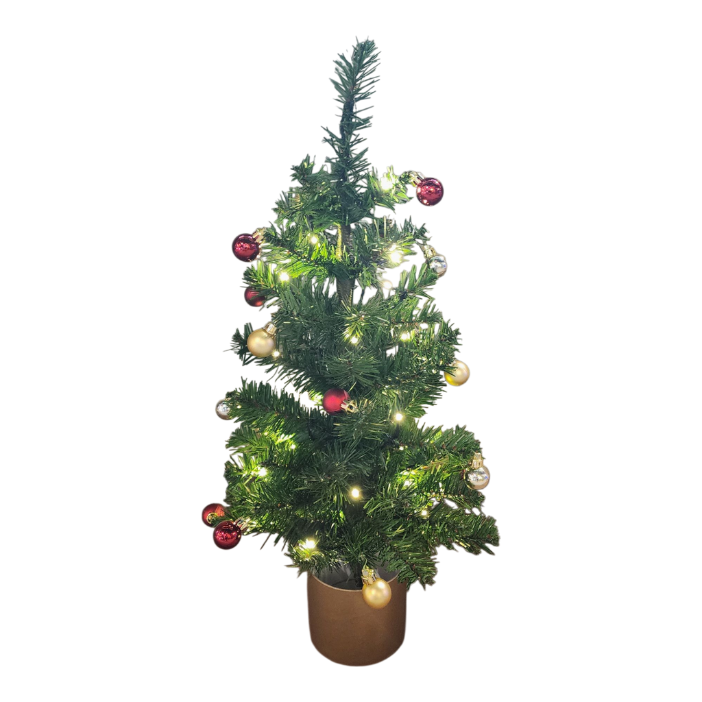 Deck the halls with ease this holiday season with the S4 Lights Battery-Operated Express Tree! Standing at an inviting 2 feet tall, this charming little tree is perfect for holiday cheer in any space, whether you have limited room on your countertop, desk, or table. With its twinkling warm white LEDs and red and gold ornaments, you’ll create a cozy ambiance without the need for plugging in. This festive little wonder is equipped with a timer function, setting the mood even when you’re busy making holiday memories!