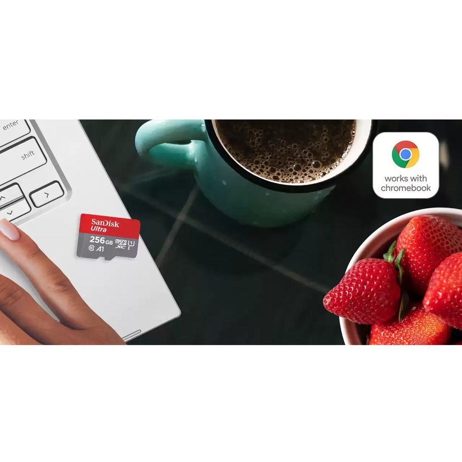 The SanDisk Ultra® microSD™ UHS-I card gives you the freedom to store and access your photos, videos, files and more. It's tested and certified to work seamlessly with Chromebooks, giving you peace of mind right from the start. With capacities up to 256GB1, you'll have room for hours of Full HD video4 and transfer speeds of up to 120MB/s2 help you move your content fast.