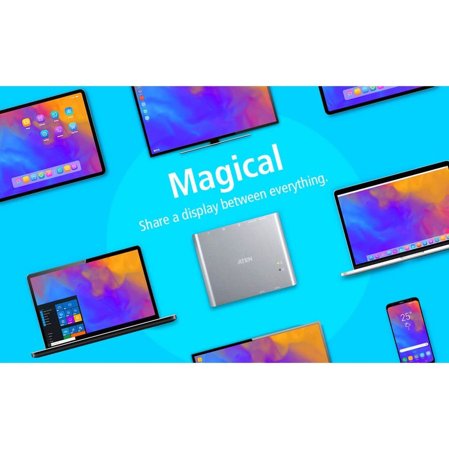 There's no time to waste on switching lag. Thanks to exclusive ATEN technology that eliminates lag and resolution issues, switching between two systems only take two seconds, making your workflow more efficient. Your HDMI connection will stay active without disrupting the layout when switching. The USB connection works as a USB hub, which means you can keep all the functionality of a keyboard and mouse, such as media keys or extra mouse buttons.