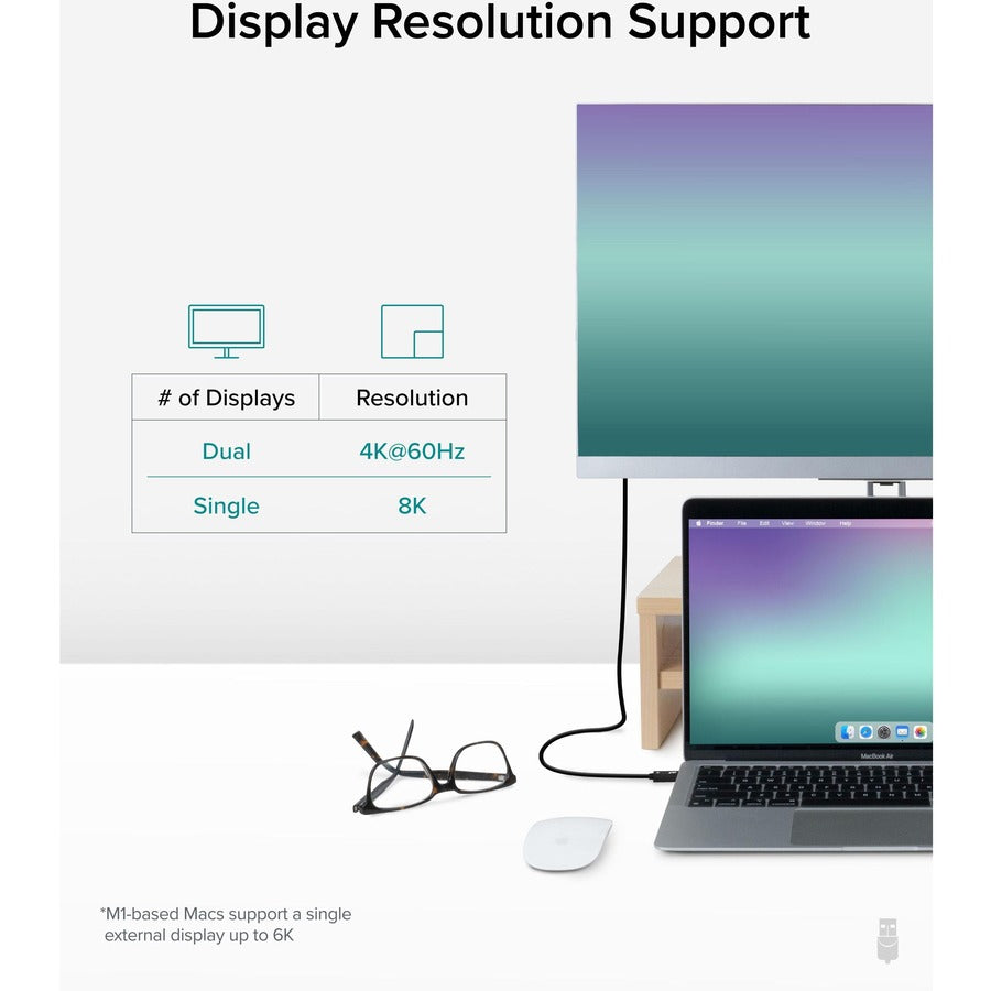 Often overlooked, the cables connecting our computers to their peripherals have an important part to play. That's why our and TBT4-40G1M cables are Thunderbolt certified-it's the only way to ensure you're getting complete compatibility and reliability. That means data transfer speeds up to 40Gbps, 100W 20V/5A Power Delivery, and backward compatibility with previous generations of Thunderbolt and USB. You have a powerful laptop. You have a high-definition monitor. Don't sacrifice your resolution to cheap Thunderbolt cables. Plugable's 1M passive Thunderbolt 4 and USB 4 cables deliver 33 million picture-perfect pixels, either split between two 4K monitors @60Hz, or all on one 8K screen @30Hz.