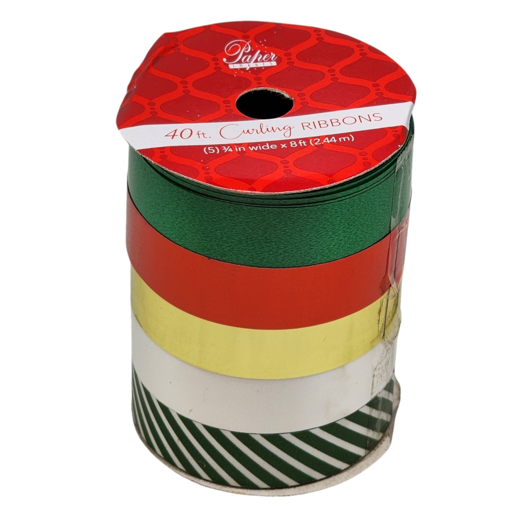 Elevate your gift wrapping and crafting with this vibrant set of Curling Ribbons! Featuring a delightful assortment of five different colors—festive green, cheerful red, gleaming yellow, classic white, and a charming green-and-white striped pattern—this set offers 40 feet of ribbon, with each roll providing 8 feet of decorative flair at ¾ inch wide.