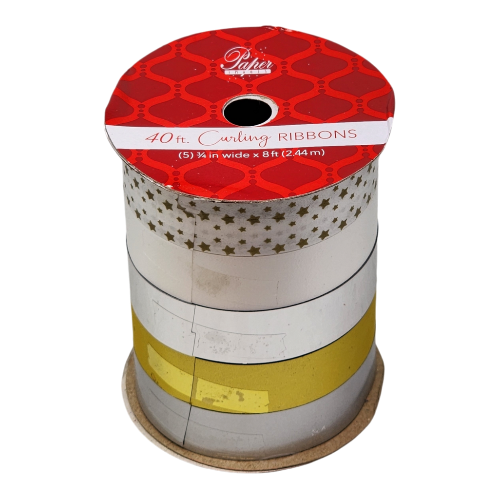 Prepare to dazzle your gifts and crafts with this stunning set of Curling Ribbons! Featuring five unique designs, this collection provides 40 feet of ribbon, with each roll measuring 8 feet in length and ¾ inch in width. Whether it's the shimmering gold, sleek silver, timeless white, radiant yellow, or the enchanting star pattern, there's a ribbon for every occasion and mood.