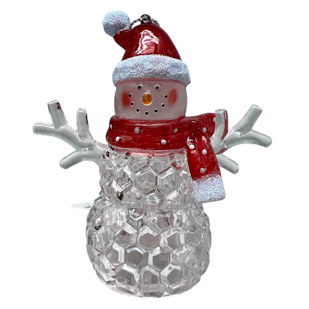 Add a sparkling touch of winter wonder to your holiday decor with the delightful 3.75" LED Snowman With Red Hat Ornament! This charming ornament features a whimsical snowman adorned with a classic red hat and scarf, exuding festive cheer. Crafted with a unique honeycomb design, the ornament features an LED light that creates a warm, inviting glow, making it a standout piece on your Christmas tree or as part of your holiday decor.