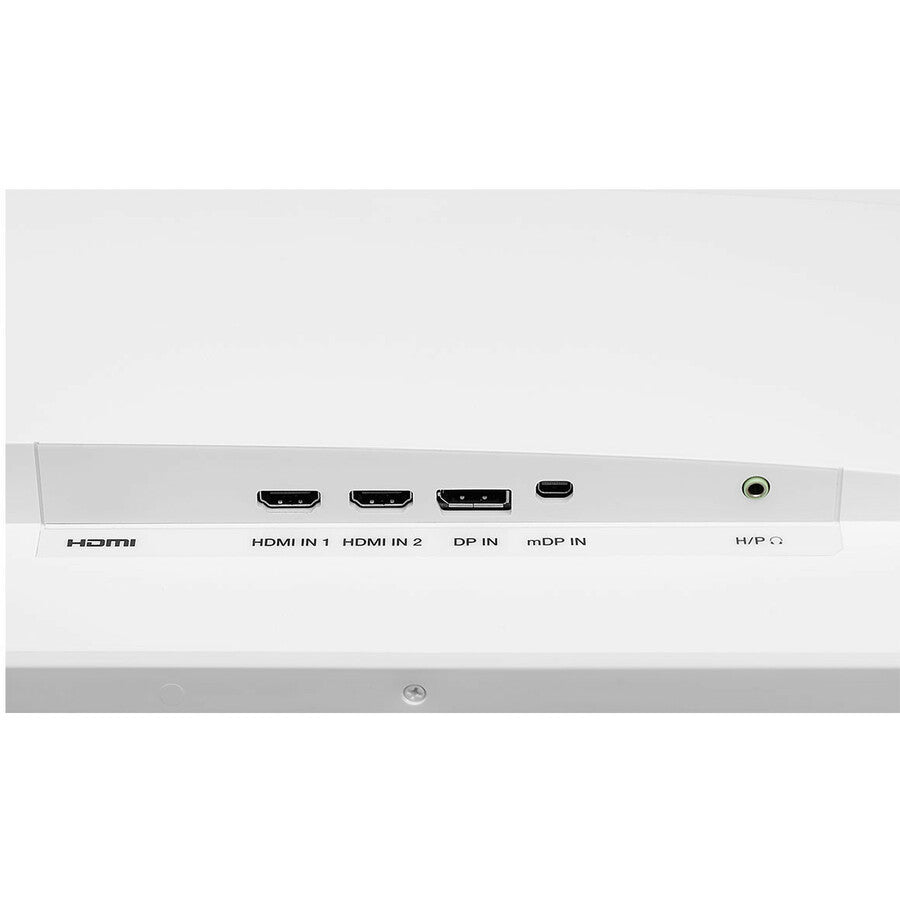 The monitor features Display Port, mDP and two HDMI inputs plus a headphone jack for versatile connectivity.