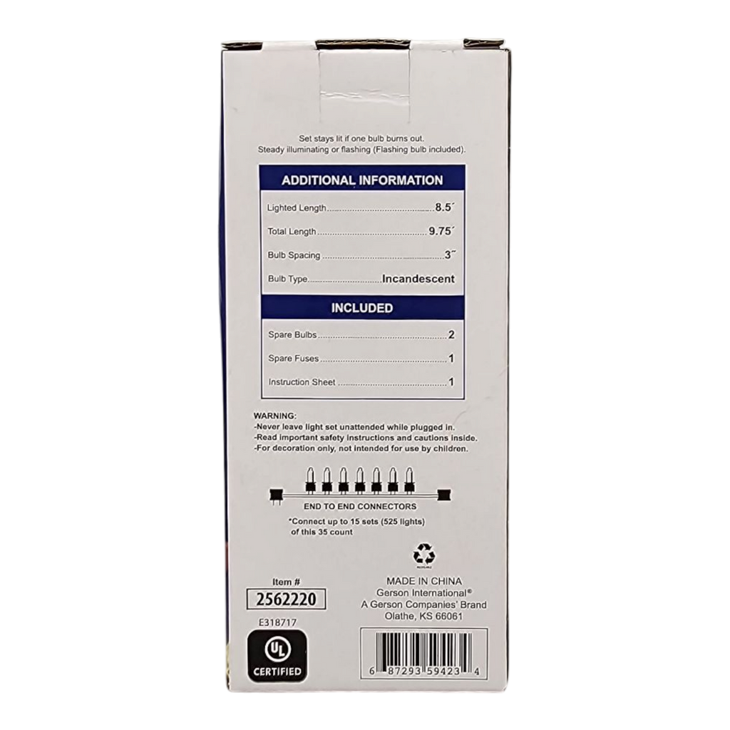 Illuminate your holiday season with our vibrant Colorful Mini Light String Set! This delightful collection features 35 mini incandescent lights that are perfect for adding a festive glow to your indoor or outdoor décor. The total length of the string is 25 feet, providing ample coverage to brighten up your space, whether adorning a Christmas tree, wrapping around banisters, or adding cheer to outdoor displays. The bulbs are spaced 8.5 inches apart, allowing for an enchanting and even spread of light.
