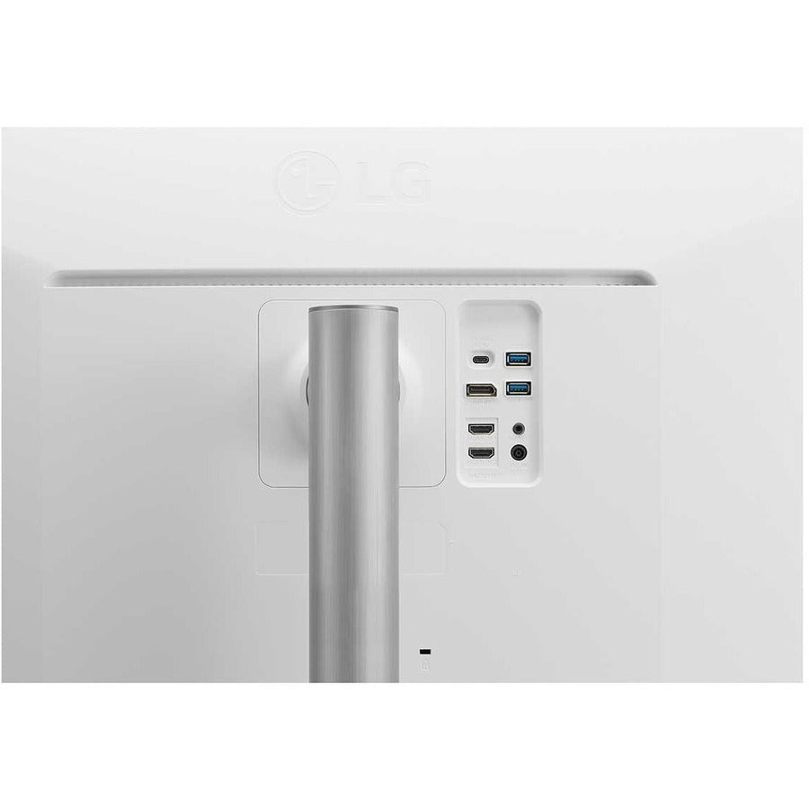 A: The monitor includes USB-C connectivity enabling single-cable connection for power, data, and video transmission, plus traditional DisplayPort and HDMI inputs for versatile device compatibility.