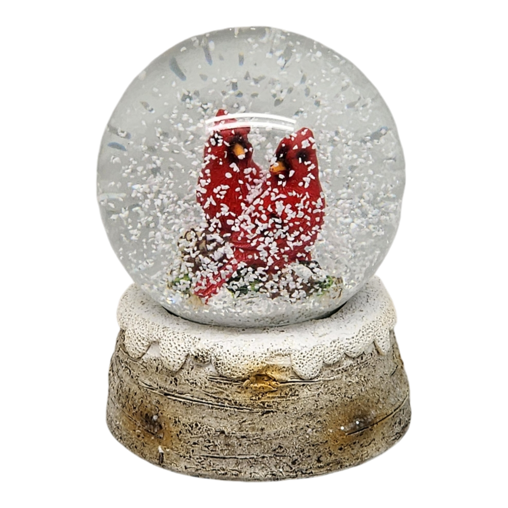 Add a touch of winter wonderland to your holiday decor with this charming Snow Globe featuring two beautifully detailed red cardinals. Standing just over 4 inches tall, this delightful keepsake encapsulates the serene beauty of a snowy day. The cardinals, symbolizing warmth and vitality, perch gracefully inside the globe, surrounded by a flurry of snowflakes when shaken, creating a mesmerizing and festive display.