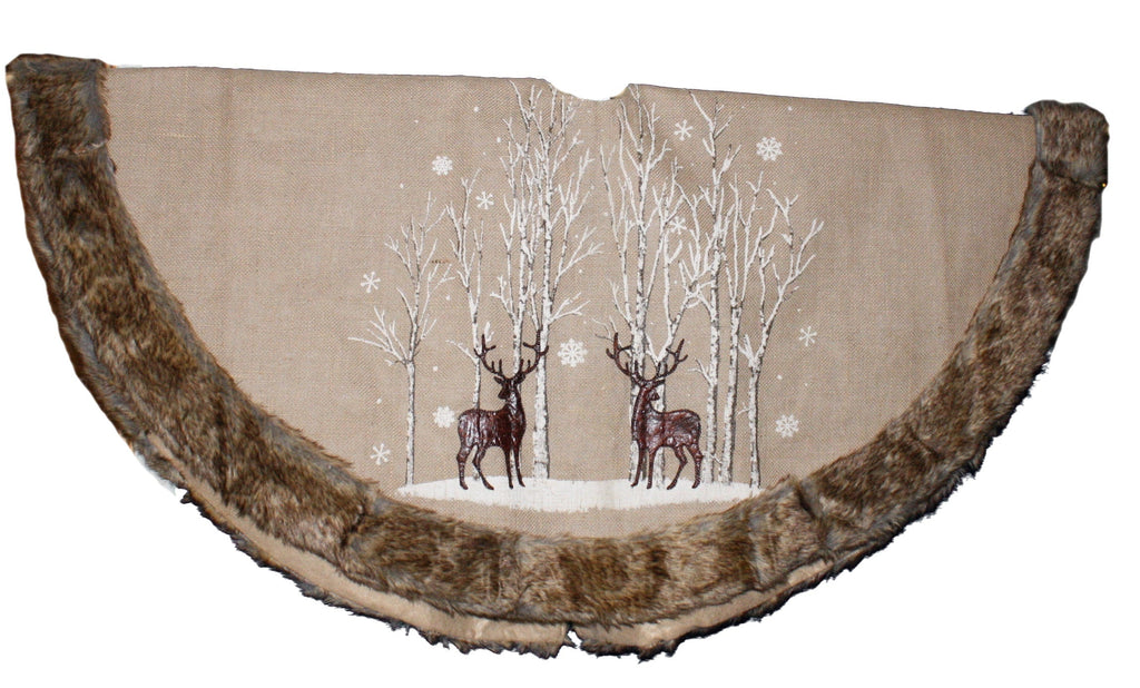Browse the Complete Gifts & Holiday Collection Bring a touch of rustic charm to your holiday decor with this 48" Reindeer Pattern Tree Skirt. Featuring a classic reindeer pattern and faux fur trim, it's sure to add a cozy feel to your home this season.