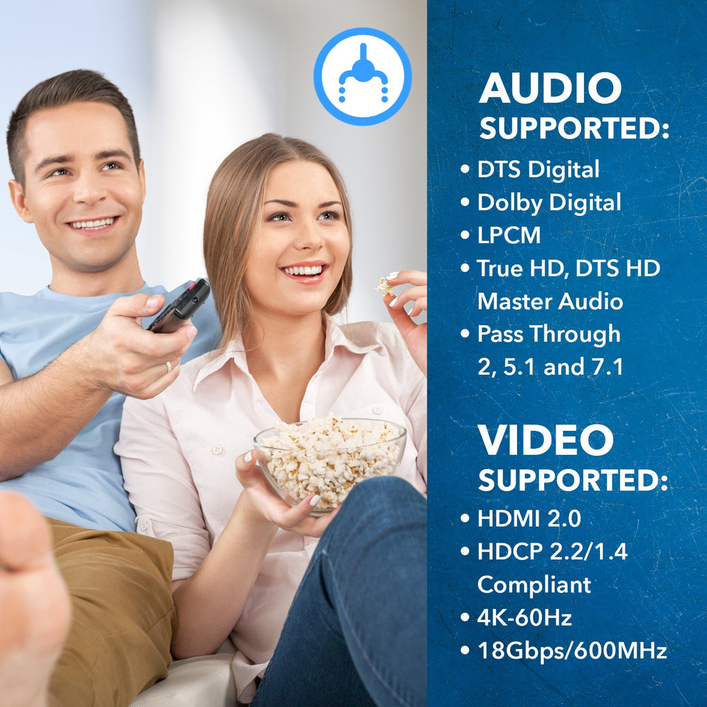 The OREI UHD-401ARC 4x1 switch can expand the HDMI input of your HDMI display with up to 4 HDMI inputs with a single HDMI cable connected to your display. Easily switch between 4 HDMI sources and output to a single HDMI output. The switch supports a 4K@60Hz signal and is HDCP 2.2 & HDMI 2.0 compliant. The HDMI Output can be selected by pressing the button on top of the device or using the included IR wireless remote control. The UHD-401ARC supports the ARC bypass function (Input-4 & Output) to connect a soundbar or audio receiver with an HDMI ARC port. DTS® HD, Dolby® TrueHD lossless compressed digital audio compliant. The product also supports CEC pass-through.