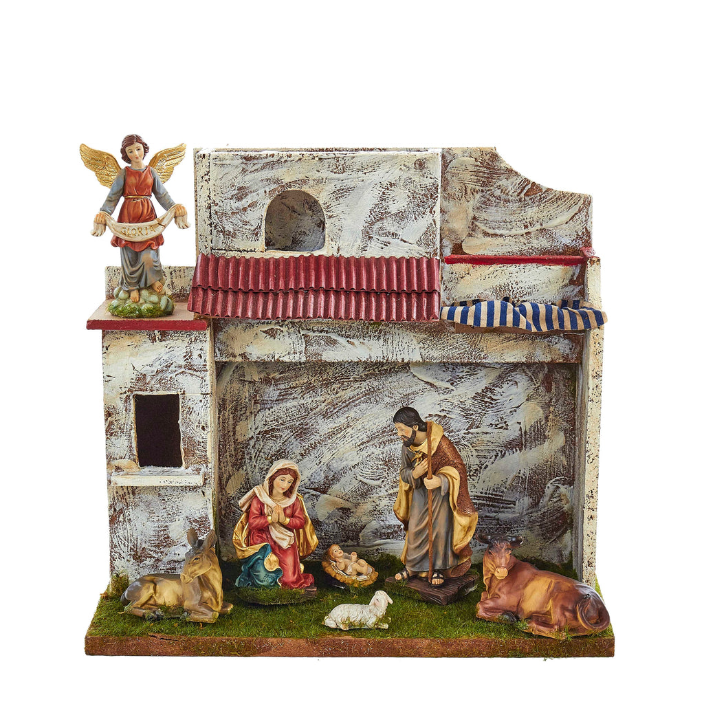Celebrate and remember the true meaning of Christmas with this 5-Inch Battery-Operated Musical Nativity Set With Stable from Kurt S. Adler. Features a beautiful detailed stable, and figurines including the Holy Family, an angel, a donkey, a cow, and a sheep. The pieces can be moved and arranged however you want. This nativity set is also musical and plays the tune, “Silent Night.“