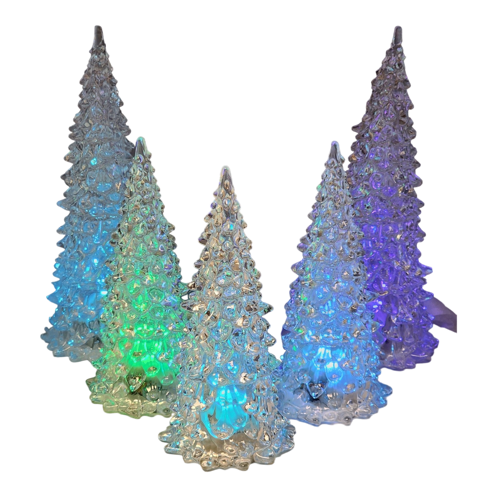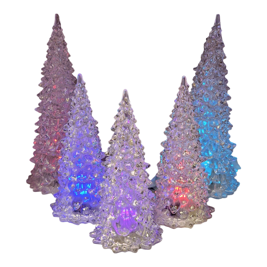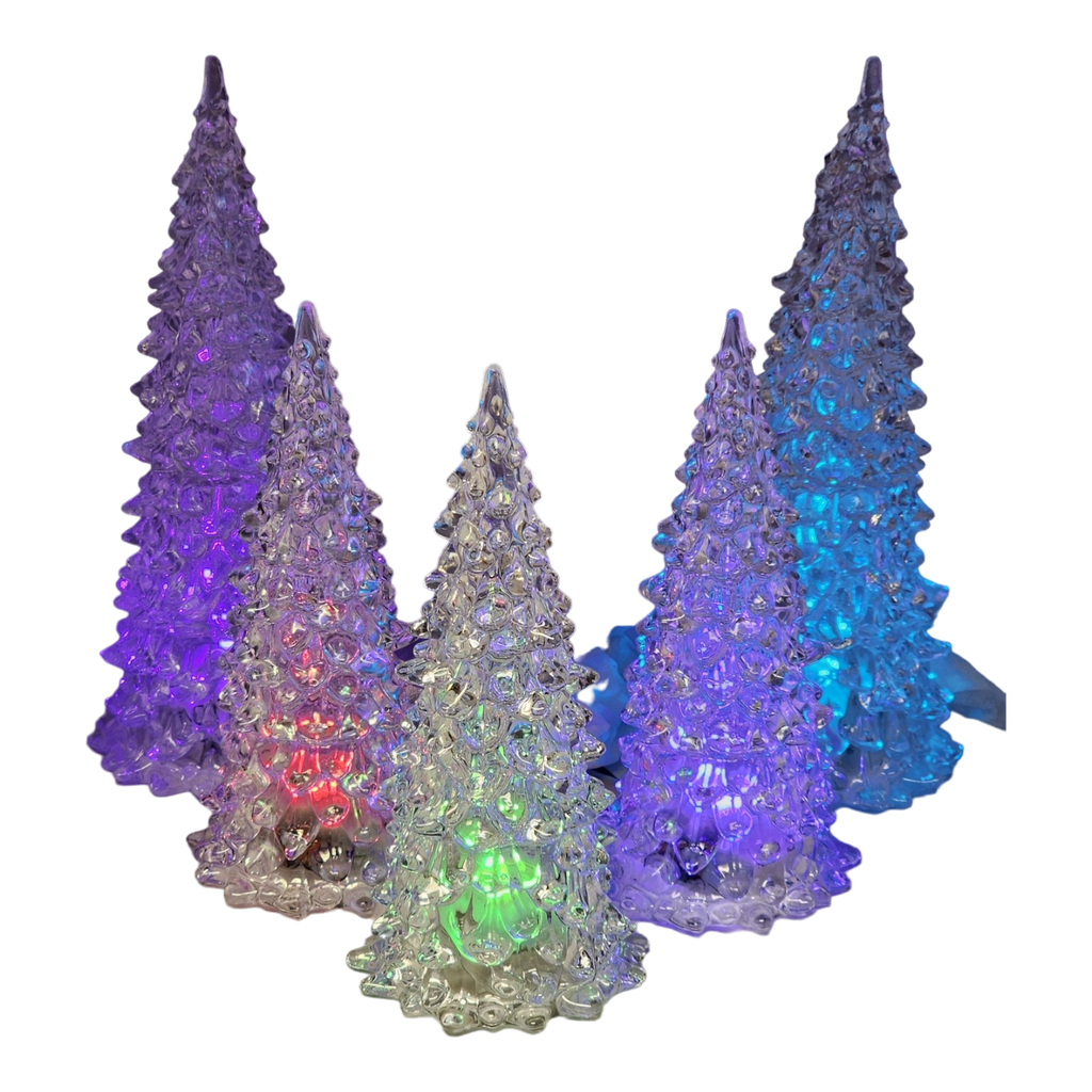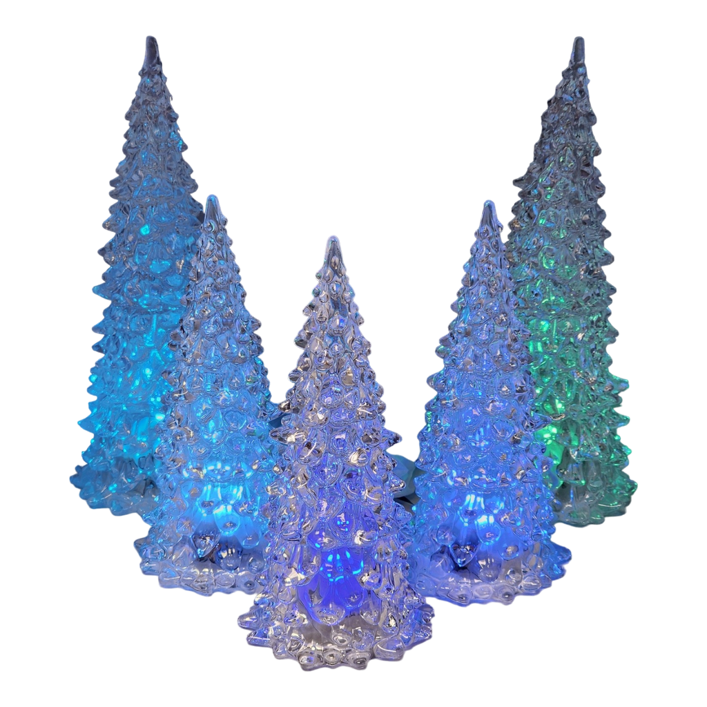 Browse the Complete Gifts & Holiday Collection Set of 5 Acrylic trees, each powered by AAA batteries with a built in color-changing LED light.