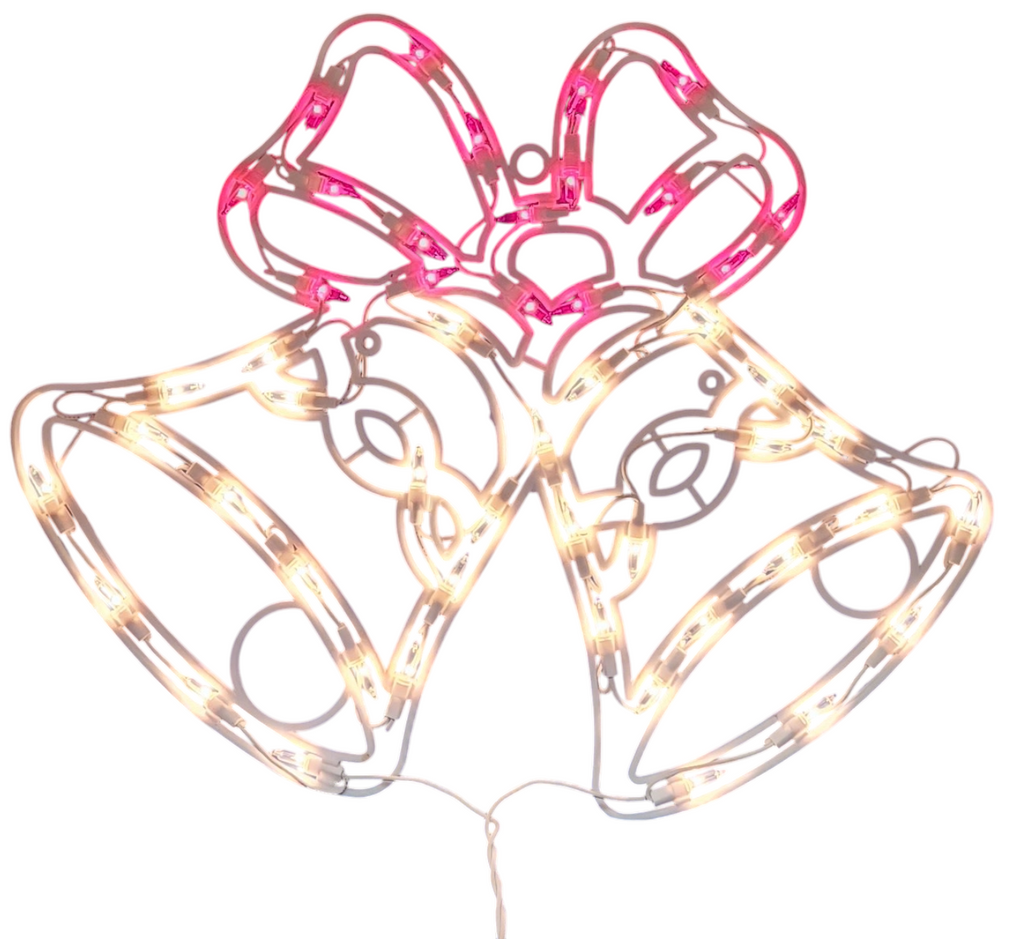 Browse the Complete Gifts & Holiday Collection Large window lighted sculpture that's perfect for the Holidays. This bow 50 lights, red lights in the bow, white lights in the bells.
