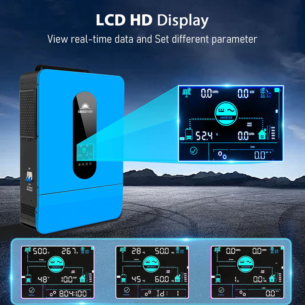 ★ Four charging / Output modes: Hybrid Charging / Utility Priority Charging / Solar Priority Charging / Only Solar Charging, 4 output modes: Utility Priority / Solar and Utility Hybrid / Solar Priority / Inverter Priority to meet your different requirements.
