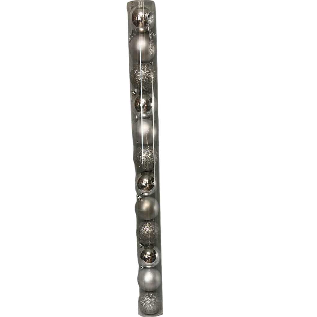 Presented in a convenient, transparent tube, these ornaments are easy to store and transport, ensuring they remain in pristine condition for many holiday seasons to come. The timeless silver hue adds a classic and elegant touch to your holiday décor, creating a festive, inviting atmosphere