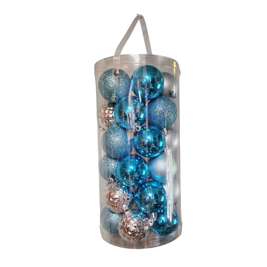 Elevate your holiday decorating with this elegant set of 60MM Light Blue Shatterproof Ornaments, featuring a 30-count assortment of beautifully designed baubles. Perfectly sized at 60MM, these ornaments are ideal for adding a touch of sparkle and sophistication to your Christmas tree, wreaths, or garlands.
