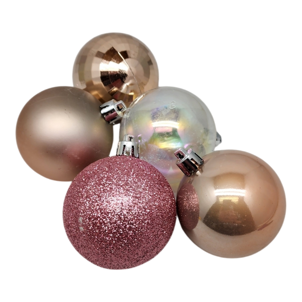 This set includes a delightful variety of finishes, from matte and glossy to glittery and faceted surfaces, all in a stunning rose gold shade. The shatterproof construction ensures these ornaments are both durable and safe, making them ideal for homes with pets or children.