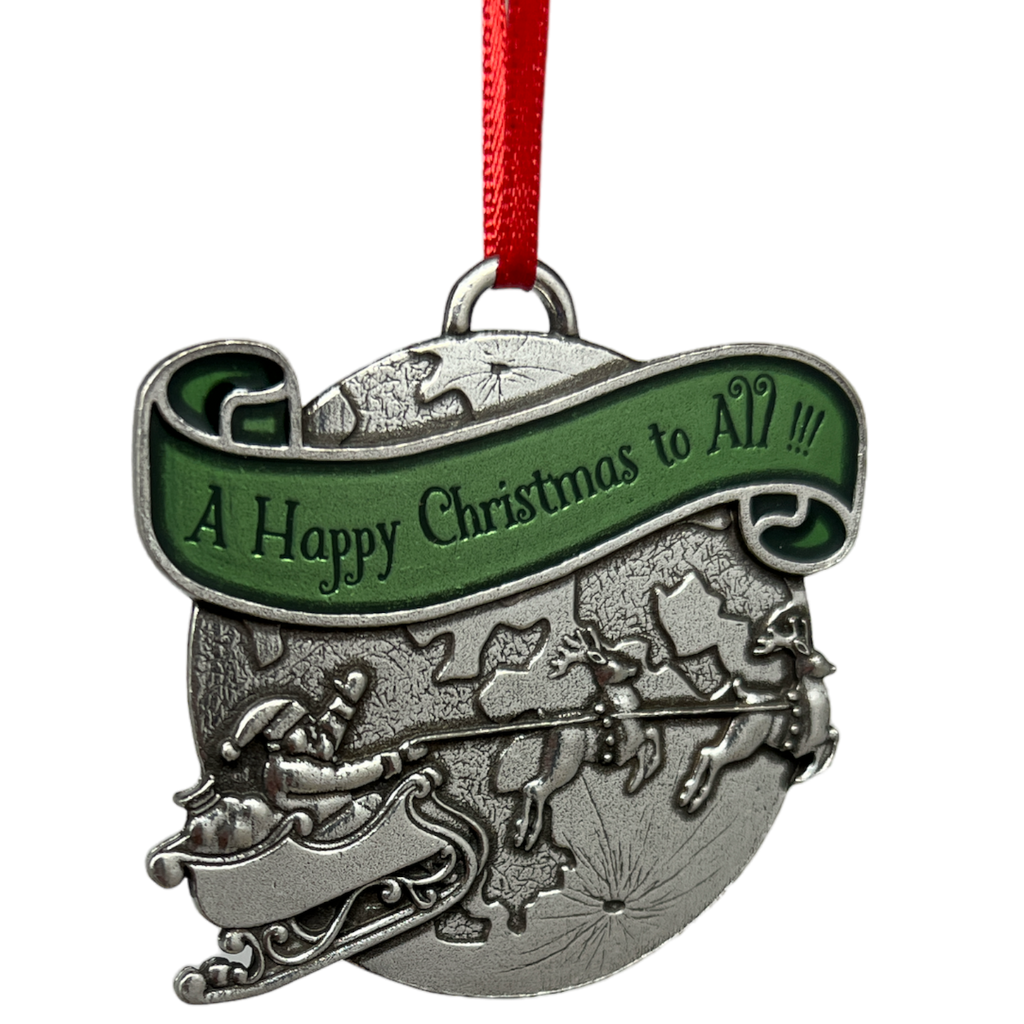 "Twas the night before Christmas, and all through the house, not a creature was stirring, not even a mouse!" This classic poem, a strong Christmas memory for so many people, was published 200 years ago on December 23, 1823. We're so excited to celebrate the occasion with our new A Happy Christmas Ornament. Santa waves from his sleigh as his reindeer carry him across the majestic backdrop of the moon, with the words "And a happy Christmas to all!"—the final words of the poem—scrolled in vivid green above him. We hope this exquisite ornament brings you joy