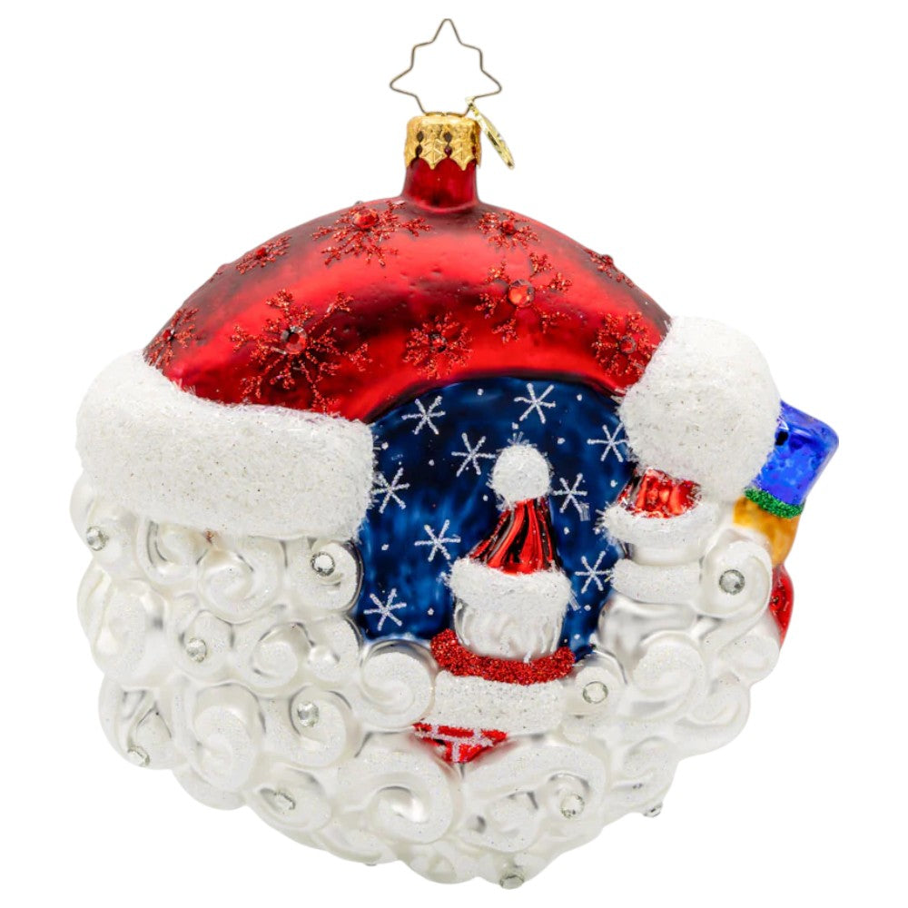 Welcome the joy of the season with the A Merry Little Christmas ornament! Masterfully designed to resemble Santa's smiling face surrounded by fluffy white clouds of snow, this charming ornament is sure to add a sprinkle of cheer to your holiday décor. The detailed red hat and twinkling snowflakes create a joyful winter scene that reflects the warmth and happiness that Christmas brings. Accompanied by playful characters like nutcrackers and cheerful elves, this ornament tells a story of holiday magic that unites loved ones in celebration.