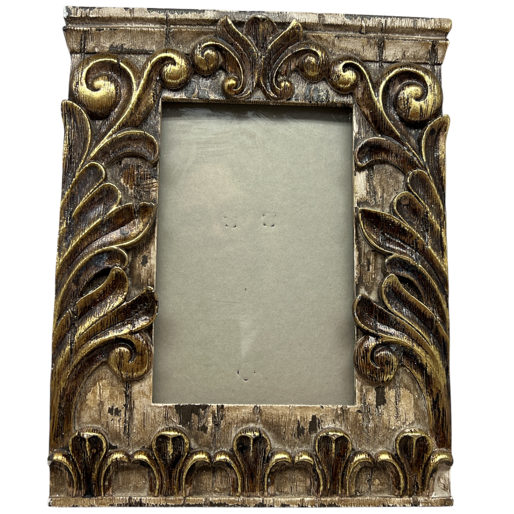 Showcase your favorite memories in style with our exquisite Ornate Photo Frame, the perfect way to add a touch of elegance to any room! Designed to hold a cherished 4 x 6 photo, this stunning frame features intricate carvings and a weathered finish that exudes a vintage charm. The striking golden highlights accentuate the beautiful floral designs, ensuring that your photographs take center stage while adding a sophisticated flair to your decor.