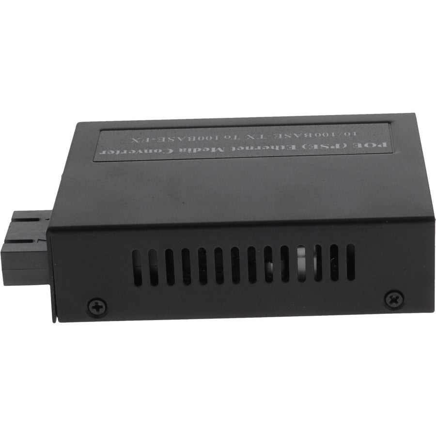 ADD-FMCP-FX-SC POE media converter with 100Base-FX multi-mode fiber, SC connector for compact Ethernet networks.