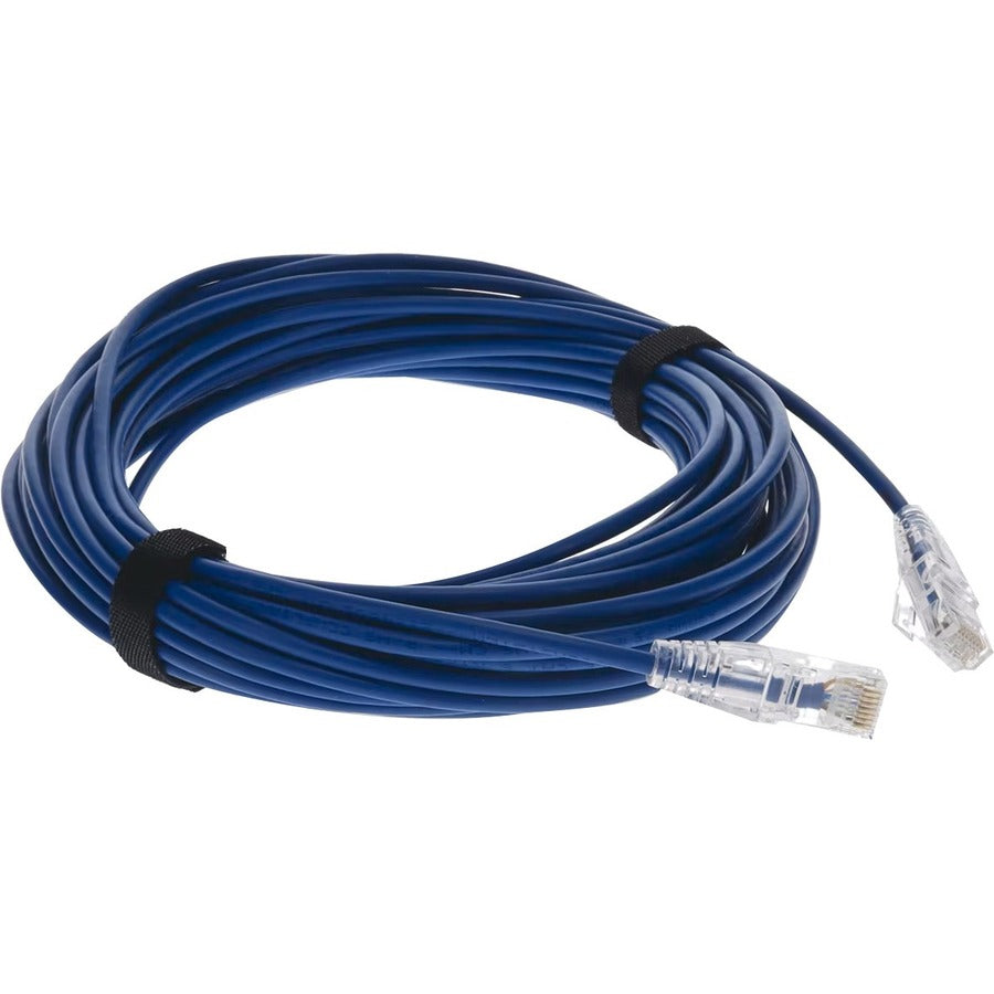 This is a 15.24m (50.0ft) RJ-45 (male) to RJ-45 (male) blue Cat6 Slim UTP PVC-rated TAA compliant patch straight cable that is used for high speed data transfer. Our patch cables are 100% compliant for all of your networking needs and are guaranteed by federal law to not affect or void OEM warranties.