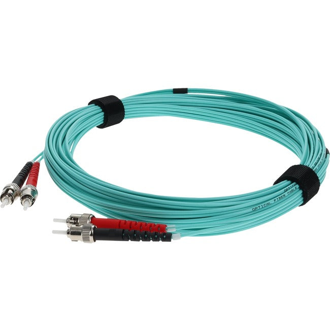 This is a 1m ST (male) to ST (male) aqua duplex riser-rated fiber patch cable. An OM4 cable has a core size of 50m microns that supports 10 Gigabit Ethernet at lengths measuring up to 550 meters, and 100 Gigabit Ethernet measuring up to 150 meters and is reverse compatible with OM3. This optical fiber, nonconductive, riser (OFNR) cable is best suited for use in interior fiber-optic applications. A duplex cable is a two-strand fiber optic patch cable that works best with transceivers that both transmit and receive. This patch cable is Trade Agreements Act (TAA) compliant. Our patch cables are 100% compliant for all of your networking needs. Our products are guaranteed by federal law to not affect or void OEM warranties.