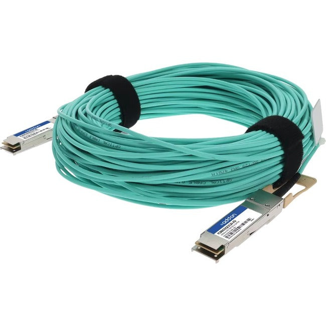 This is a Finisar® FCBN425QE2C30 compatible 100GBase-AOC QSFP28 to QSFP28 active optical cable that operates over multi-mode fiber with a maximum reach of 30.0m (98.4ft). At a wavelength of 850nm, it has been programmed, uniquely serialized, and data-traffic and application tested to ensure it is 100% compliant and functional. This active optical cable is TAA (Trade Agreements Act) compliant, and is built to comply with MSA (Multi-Source Agreement) standards. We stand behind the quality of our products and proudly offer a limited lifetime warranty.