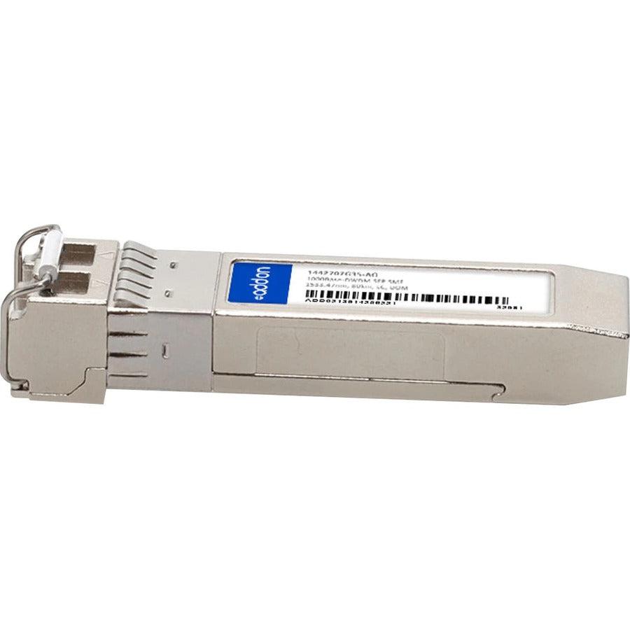 AddOn Networks 1442707G35-AO. SFP transceiver type: Fiber optic, Maximum data transfer rate: 1000 Mbit/s, Interface type: SFP. Country of origin: United States, Certification: TAA. Width: 69.8 mm, Depth: 120.7 mm, Height: 30.5 mm. Package weight: 181.4368 g