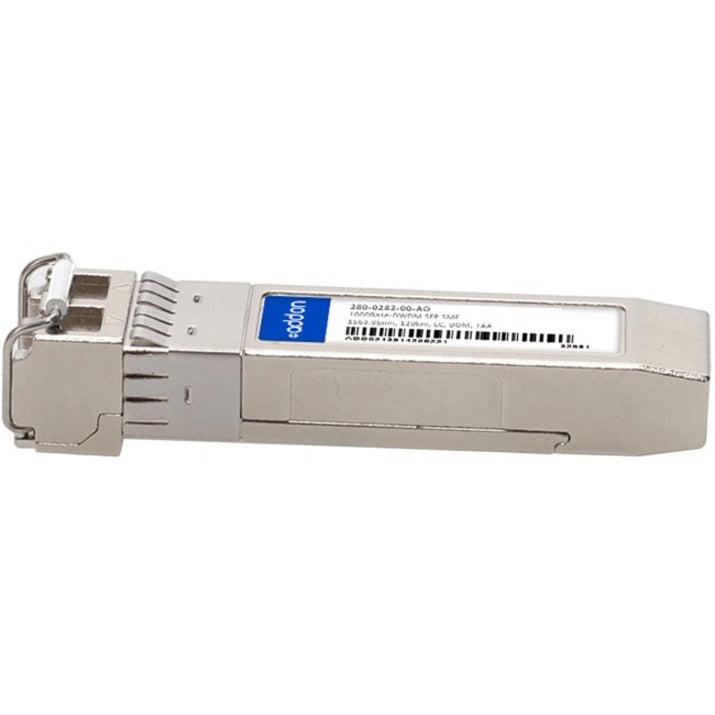 AddOn Networks 280-0282-00-AO. SFP transceiver type: Fiber optic, Maximum data transfer rate: 1000 Mbit/s, Interface type: SFP. Country of origin: United States, Brand compatibility: CyAN.network, Compatible products: 280-0282-00. Width: 69.8 mm, Depth: 120.7 mm, Height: 30.5 mm. Package weight: 181.4368 g