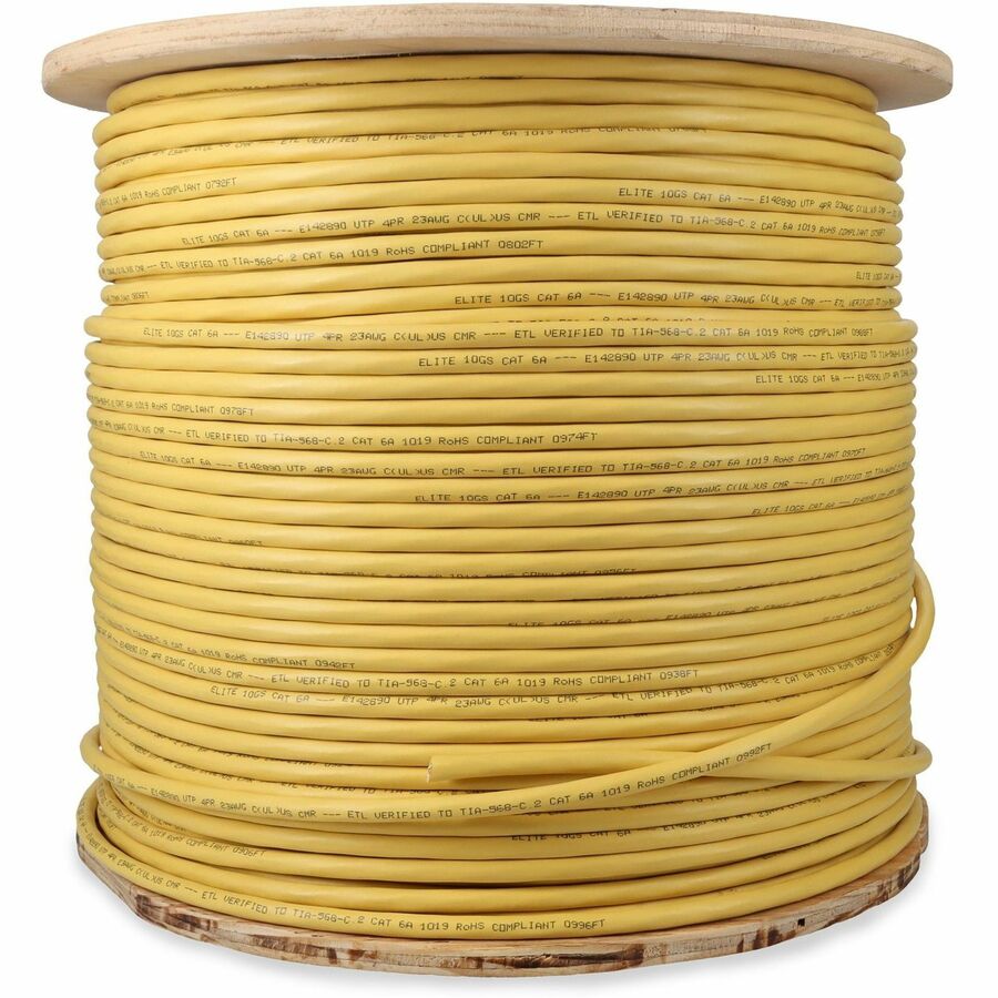 This is a 1000ft non-terminated yellow unshielded twisted pair PVC copper patch cable. The Cat6A cable is designed to support the high speed of EoC (Ethernet over Copper) over the full 100 meters. Cat6A cable standards provide a performance of up to 500MHz and is suitable for 100Base-TX, 1000Base-T and 10GBase-T. This PVC jacketed cable is best suited for LANs or SANs, and is recommended for connection between fiber patch panels, hubs, switches, media converters and routers. Unshielded twisted pair patch cables are perfect for data centers, LANs and other short range network connections. Our patch cables are 100% compliant for all of your networking needs. Our products are guaranteed by federal law to not affect or void OEM warranties.