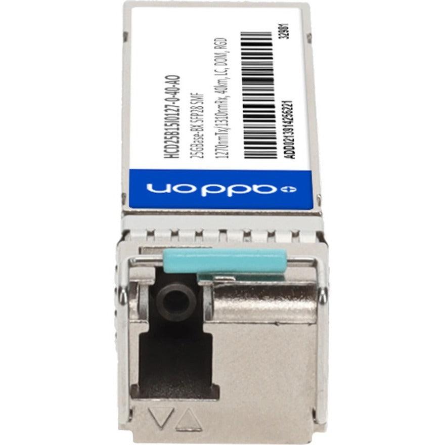 AddOn Networks HCD25B15I0127-0-40-AO. SFP transceiver type: Fiber optic, Maximum data transfer rate: 25000 Mbit/s, Interface type: SFP28. Product colour: Multicolour, Certification: ISO, TAA, RoHS, CE, WEEE, NEBS, BBB. Number of products included: 1 pc(s)
