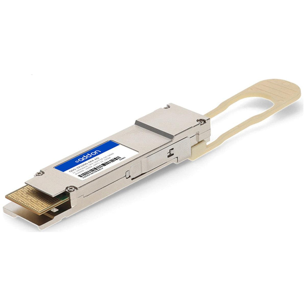AddOn Networks Juniper Networks QDD-2X100G-SR4 TAA Compliant 2x 100GBase-SR4 QSFP28-DD Transceiver (MMF, 850nm, 100m, MPO-24, DOM). SFP transceiver type: Fiber optic, Maximum data transfer rate: 200000 Mbit/s, Interface type: QSFP28. Product colour: Stainless steel, Housing material: Metal, Country of origin: United States. Package width: 120.7 mm, Package depth: 69.8 mm, Package height: 30.5 mm
