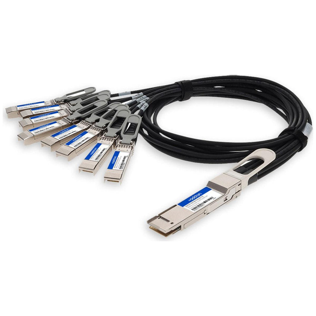 AddOn Networks MSA and TAA Compliant 200GBase-CU QSFP-DD 200G to 8xSFP28 Direct Attach Cable (Passive Twinax, 2m). Cable length: 2 m, Connector 1: QSFP-DD, Connector 2: 8xSFP56. Package width: 304.8 mm, Package depth: 228.6 mm, Package height: 38.1 mm