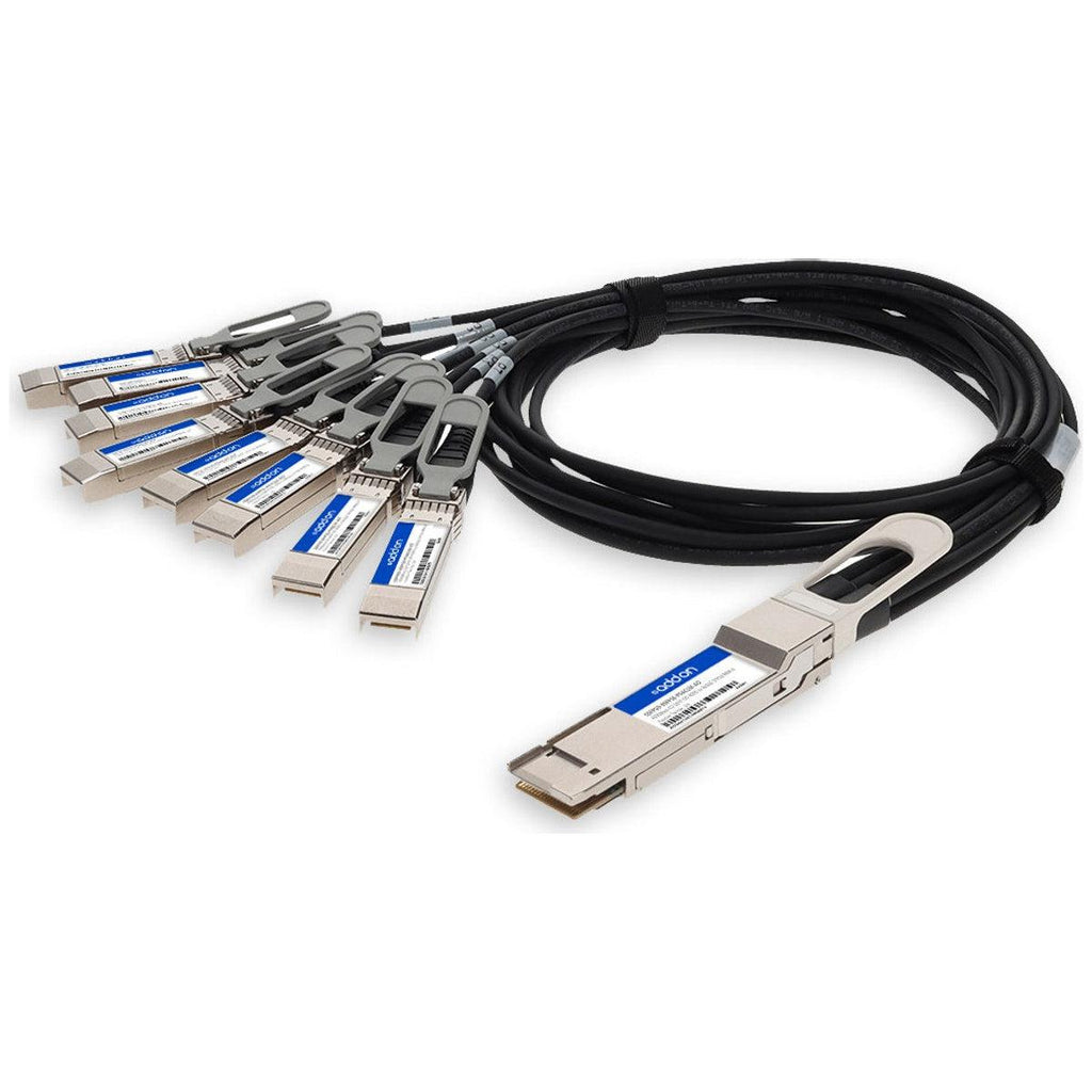 AddOn Networks MSA and TAA Compliant 400GBase-CU QSFP-DD 400G to 8xSFP28 Direct Attach Cable (Passive Twinax, 1m). Cable length: 1 m, Connector 1: QSFP-DD, Connector 2: 8xSFP56. Package width: 304.8 mm, Package depth: 228.6 mm, Package height: 38.1 mm