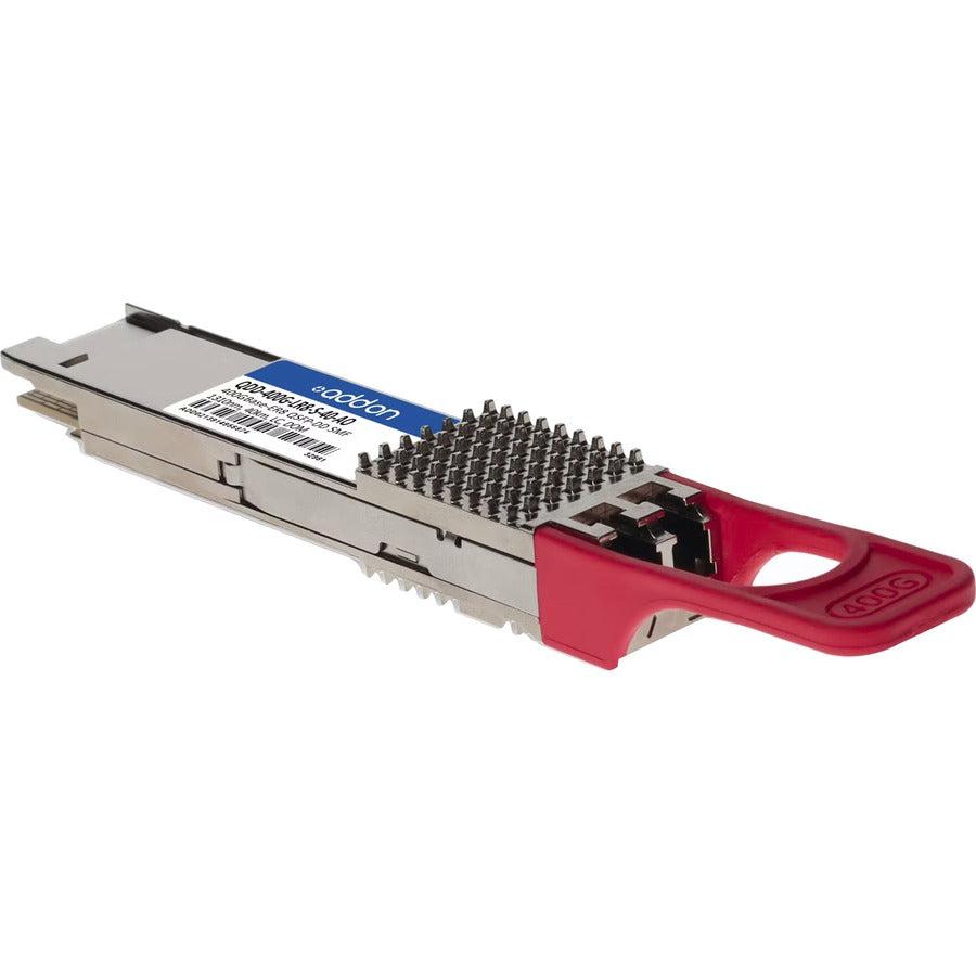 AddOn Networks QDD-400G-LR8-S-40-AO. SFP transceiver type: Fiber optic, Maximum data transfer rate: 400000 Mbit/s, Interface type: QSFP-DD. Certification: ISO, TAA, RoHS, CE, WEEE, NEBS, BBB. Number of products included: 1 pc(s)