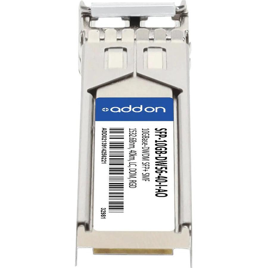 AddOn Networks SFP-10GB-DW56-40-I-AO. SFP transceiver type: Fiber optic, Maximum data transfer rate: 10000 Mbit/s, Interface type: SFP+. Product colour: Grey. Package width: 37 mm, Package depth: 40.5 mm, Package height: 34.2 mm
