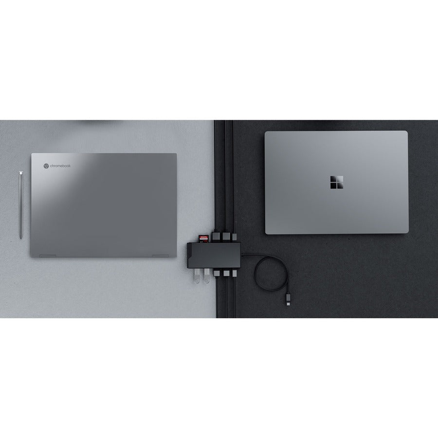 Great Connections in 12 Ports|Plug into New-Found Productivity Your work is all about connections. So is the MV2. Connect all your favourite essentials - phone, tablet, keyboard, mouse and the rest - to the ultra-compact dock's five USB ports [USB-A and USB-C]. Enjoy reliable internet in the clutch, with Gigabit Ethernet. Plug into two display ports for more screen space, and use the SD Card Reader to stop time squandered on slow video and image transfers.