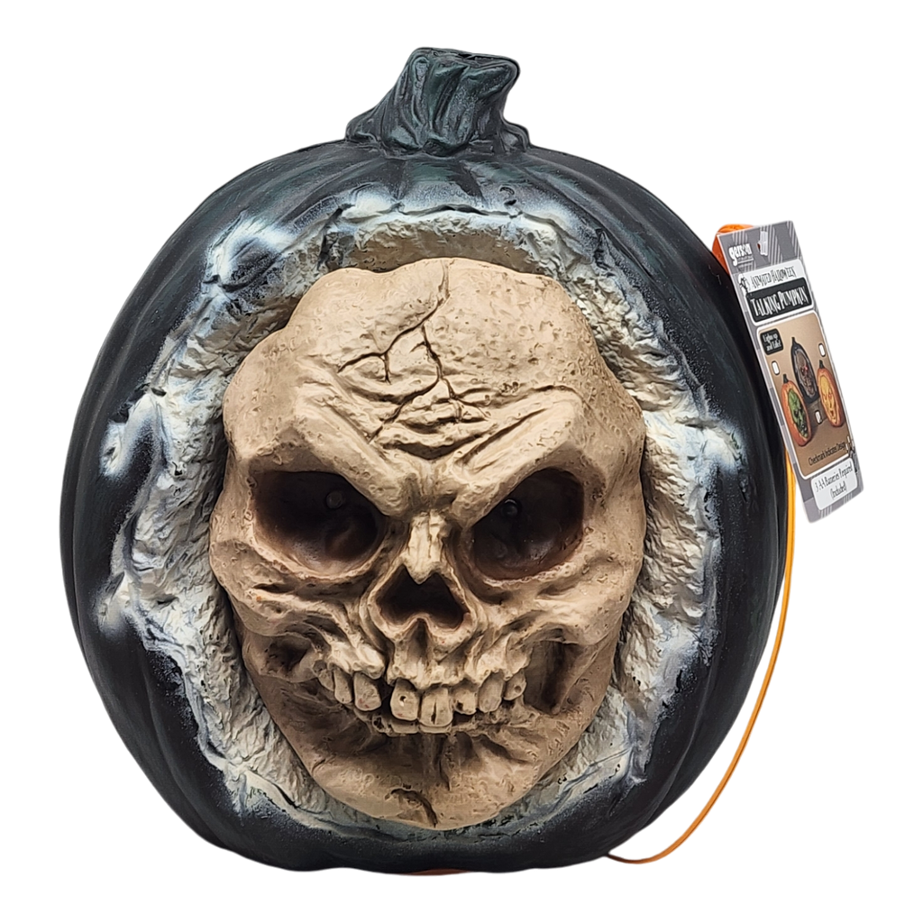 Browse the Complete Gifts & Holiday Collection Bring your Halloween decor to life with this spine-chilling Animated Skeleton Pumpkin! This eerie pumpkin features a menacing skull face that springs into action whenever it hears a sound. When triggered, its eyes light up with an ominous glow, its face contorts with sinister animation, and it speaks a variety of spooky phrases that are sure to send shivers down your spine. Perfect for adding an interactive and terrifying touch to your haunted setup!