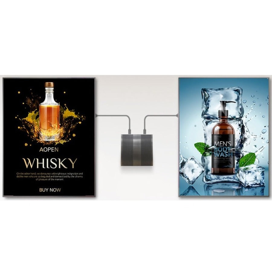 Dual output player, for dual display solutions. These value or mid-range computing devices have multiple outputs, and are therefore perfect for digital signage and dual screen kiosks.
