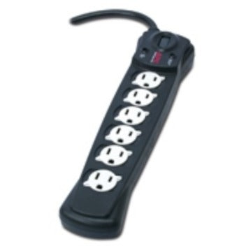 APC P6B. AC outlets quantity: 6 AC outlet(s), AC outlet types: NEMA 5–15P, Nominal input voltage: 120 V. Product colour: Black. Cable length: 1.8 m, Weight: 600 g, Width: 57 mm