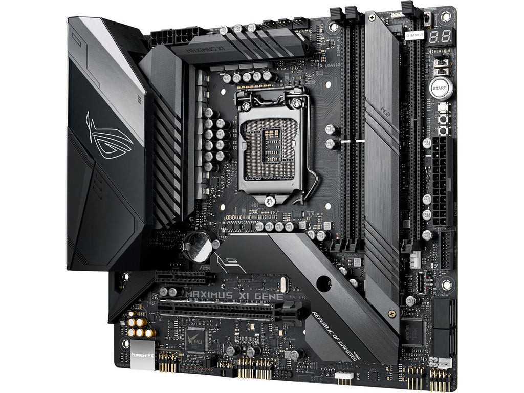 ROG Maximus XI Gene features a dedicated onboard clock generator that supplies dynamic reference clocks to the CPU cores and major subdomains, giving you the freedom to coax every MHz of headroom from the system.
