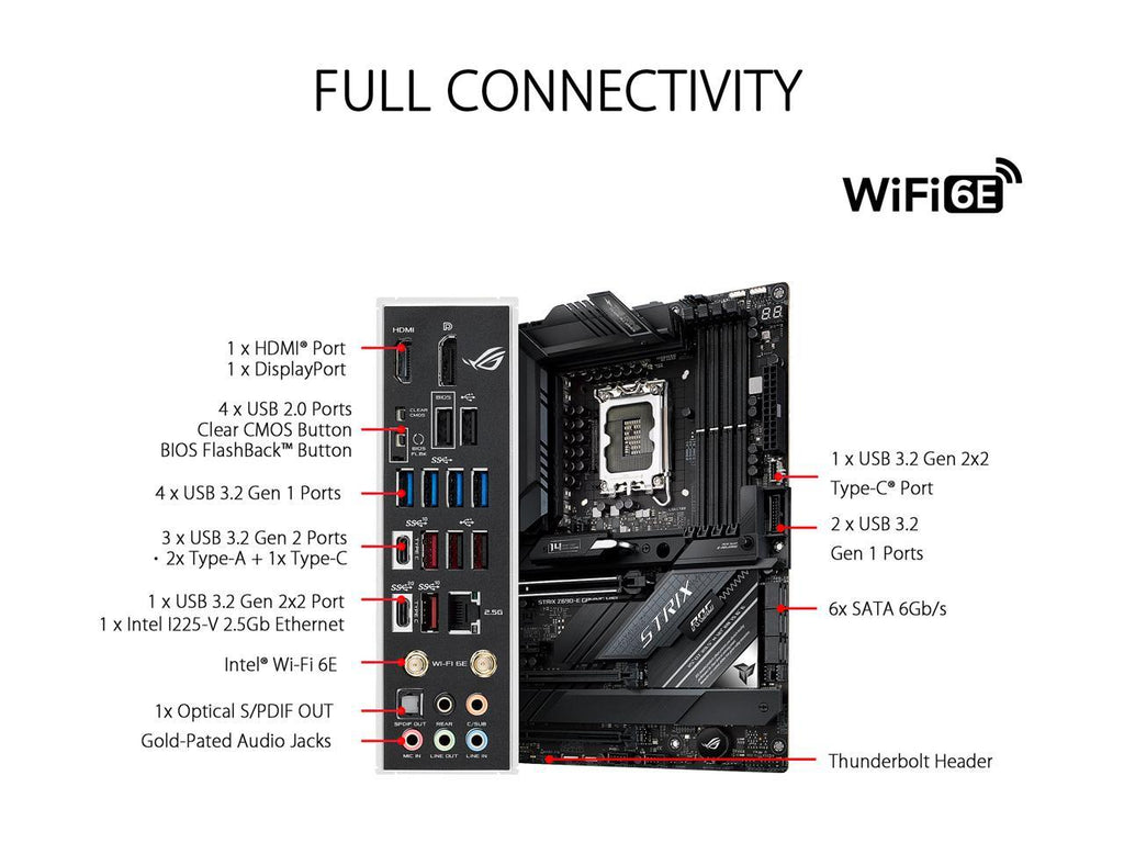 - High-performance Gaming Networking: On-board WiFi 6E and Intel 2.5 Gb Ethernet with ASUS LANGuard