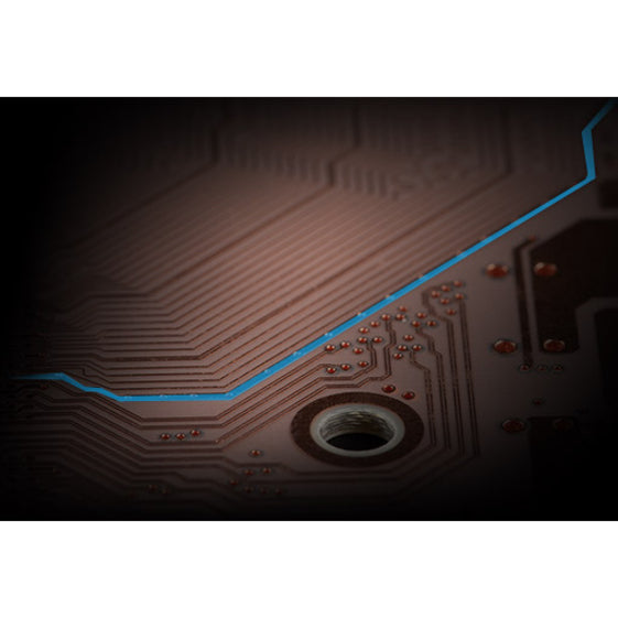 - OptiMem II: Careful routing of traces and vias, plus ground layer optimizations to preserve signal integrity for improved memory overclocking.