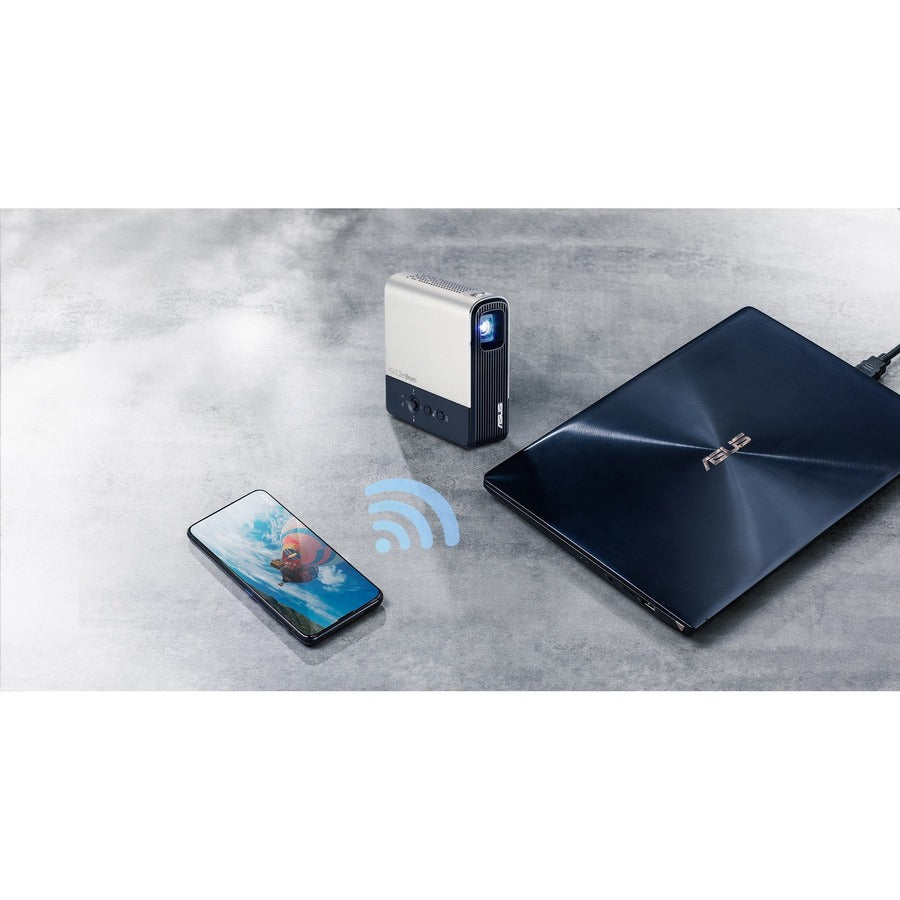 ASUS ZenBeam E2 wireless mini projector redefines portable entertainment. It features an automatic portrait projection mode that lets users change the projector's orientation while in use so they can easily enjoy social media content and livestreams on a bigger screen. And there's no need to tinker with settings ? because the black sidebars are automatically removed as the projected image smoothly transitions from horizontal to vertical orientation.