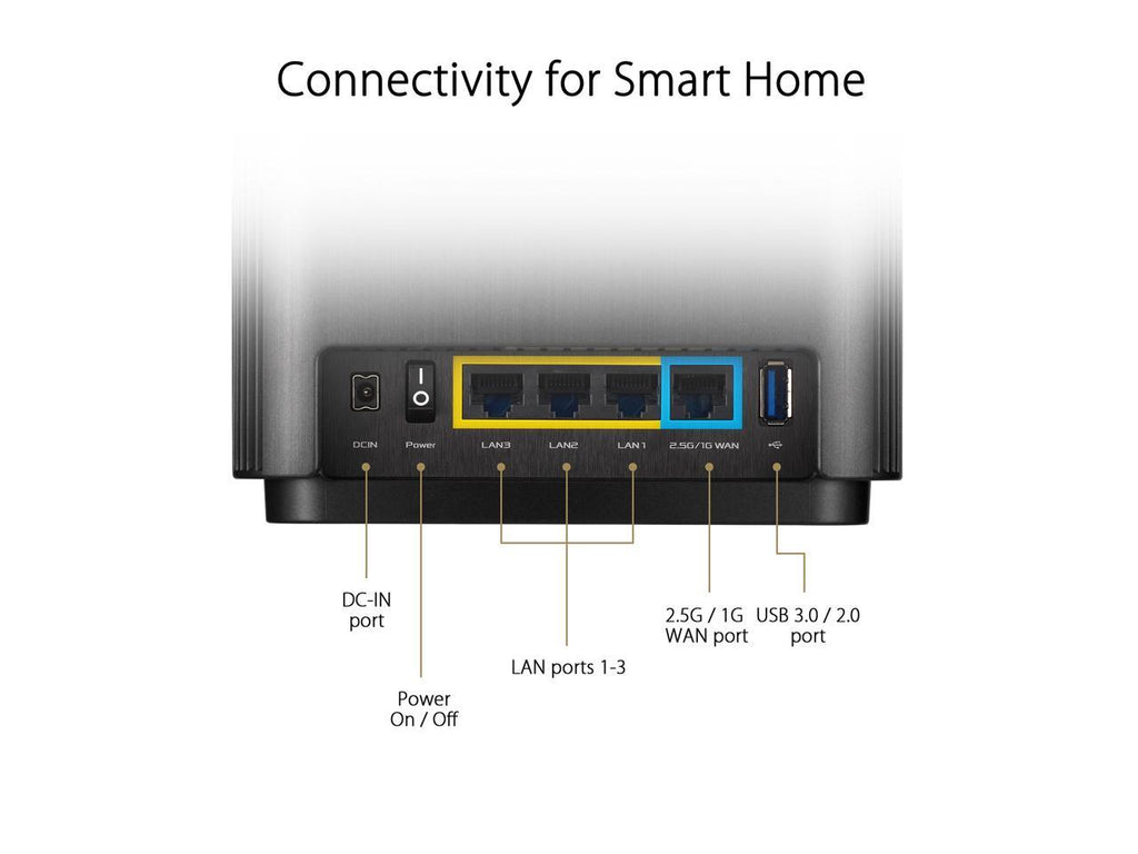 WiFi 6 mesh router with ASUS ZenWiFi AX6600 tri-band technology. Best wireless router for large home coverage up to 5,500 sq ft with whole home mesh system.
